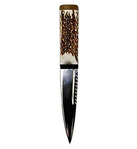 The blades of our sgians dhu are made from high quality stainless steel. The handles are hand crafted from naturally shed deer antler or a variety of quality hardwoods. The sgian dhu comes complete with a leather sheath tooled with a Celtic design.